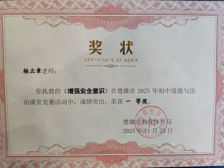 在学科教学方面,杨正章老师长期深耕教学一线,积极参与专业能力提升,课堂教学水平过硬。曾在校级、市级课堂竞赛中荣获一等奖,展现了出色的课程设计与教学实施能力。愿以热忱与智慧,陪伴学生走过一段关键的人生旅程。