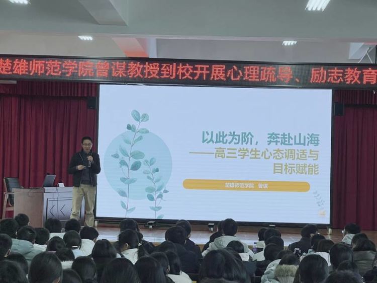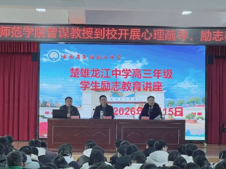 近日,楚雄龙江中学高三年级质量监测成绩分析表扬会与心理辅导讲座同步举行,以“表扬优秀鼓干劲、专业疏导稳心态”的双重举措,为全体高三学子冲刺高考注入强劲动力。张玲校长及全体高三师生参会,楚雄师范学院曾谋教授受邀担任心理辅导主讲嘉宾。