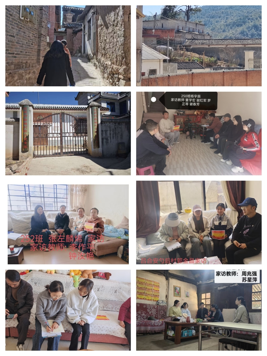 为推进“双百”家访全覆盖、深化家校协同育人,2月3日,楚雄龙江中学七年级22名教师分组对吕合片区82户学生家庭开展家访,覆盖该镇5个社区、8个村委会,涉及汉、彝等民族聚居的集镇、村落及偏远村组,以实地沟通筑牢新学期教育教学根基。