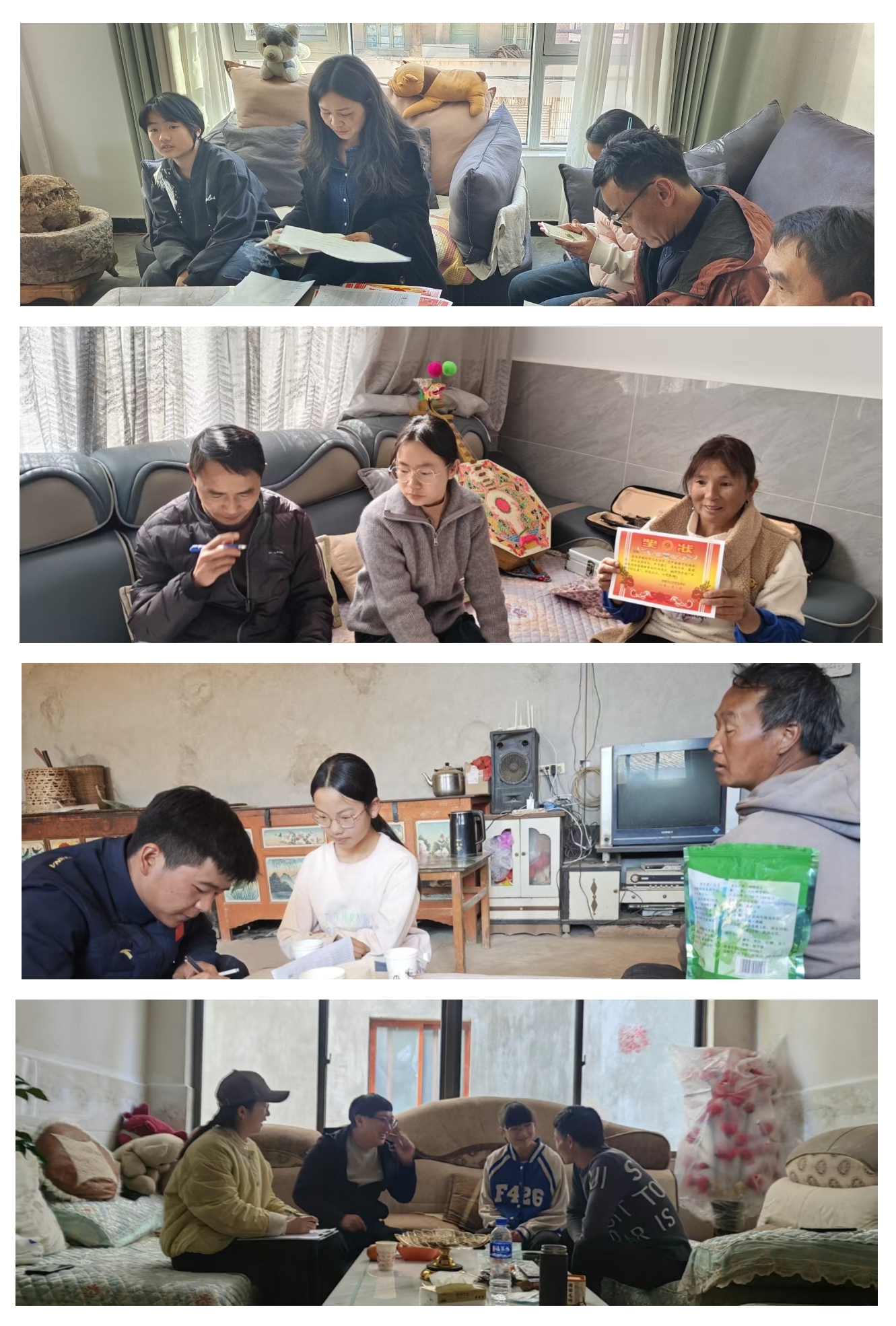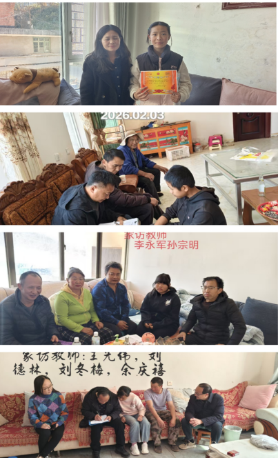 教师们穿梭于乡间小道,走进农业家庭,强调田间防火规范,鼓励学生在农活中培养吃苦耐劳品质,协调同村学生集中学习交流;对留守儿童家庭,与祖辈监护人细致沟通饮食起居、健康防护等事宜;为学业进步、勤劳孝顺、乐于助人的学生现场颁发“进步之星”“劳动小能手”等奖状;结合乡村春节民俗特点,提醒出行安全,引导尊重民族习俗、理性参与节日活动。