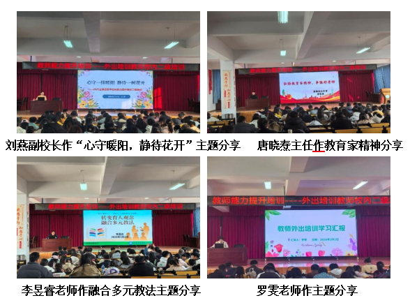 共享外出所学:遵循“外出培训,回校分享”的原则,2025年秋季学期外出参训的教师依次进行了精彩的校内二级培训。他们围绕德育实践、教育家精神、教学融合等主题,将所学、所思、所悟倾囊相授,实现了“一人学习,众人受益”的辐射效果。