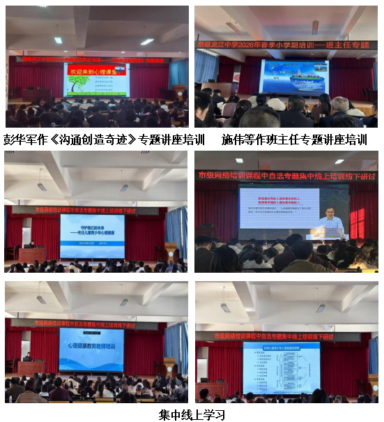 培训第一阶段(2月25日-28日)为网络研修。全体教师不仅完成了市教体局教培中心部署的专题学习,还自主遴选了国家及市级平台的优质课程,围绕“教师AI技术实践”、“优秀传统文化进校园”、“PBL项目化教学”等主题开展集中学习,汲取前沿教育智慧。其中,云南省彭华军心理健康教育名师工作室带来的《沟通创造奇迹》线上专题培训,聚焦师生、家校沟通艺术,通过理念更新与实战演练,助力教师构建科学高效的协同育人沟通体系。班主任专题培训则围绕“科技赋能”与“幸福成长”,引导班主任探索教育科技融合实践,探寻职业幸福感与价值感。