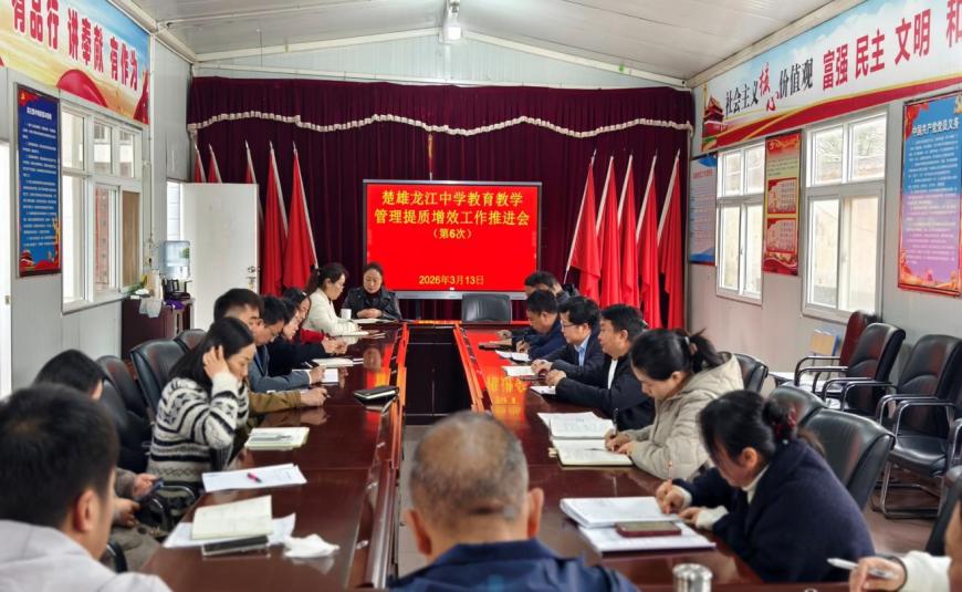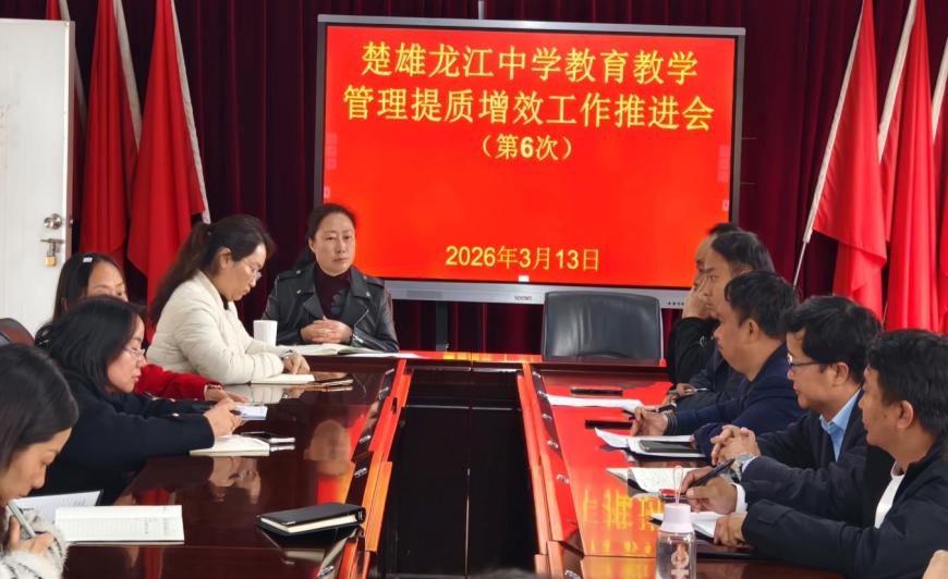 为了确保本学年学校各项教学工作的顺利开展,使学校的教育教学管理工作进一步得到落实,提升学校的育人质量,3月13日,我校在静雅苑会议室召开2026年春季学期楚雄龙江中学教育教学提质增效工作推进会。分管教学副校长、教科处、教务处、各年级主任和初高中各学科教研组长参加了此次会议。