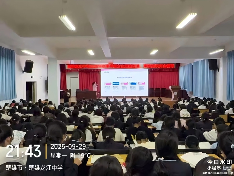 为引导女生更好认识自我、健康成长,2025年9月29日晚,楚雄龙江中学开展“青春的成长密码——校园健康成长主题宣传活动”,全校女生齐聚一堂,聆听高中部罗晓萍老师带来的精彩讲座,共同探索青春成长中的重要知识。