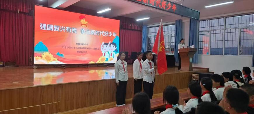 为庆祝中国少年先锋队建队76周年,深入学习贯彻习近平总书记关于少年儿童和少先队工作的重要论述,引导广大少先队员传承红色基因,争做新时代好少年,楚雄龙江中学于2025年10月13日18:30,在学校六楼大会议室举行了“强国复兴有我 争当新时代好少年”初一年级少先队建队仪式。学校团委代表、全体辅导员及初一年级全体少先队员共同参加了此次庄严而富有教育意义的盛会。
