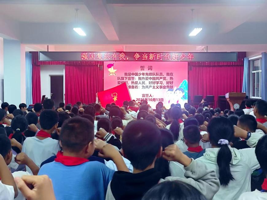 在少先队辅导员的带领下,全体队员高举右拳,重温入队誓词。“准备着:为共产主义事业贡献力量!”的誓言铿锵有力,回荡在整个会场,这是新时代好少年对祖国、对人民的郑重承诺。
